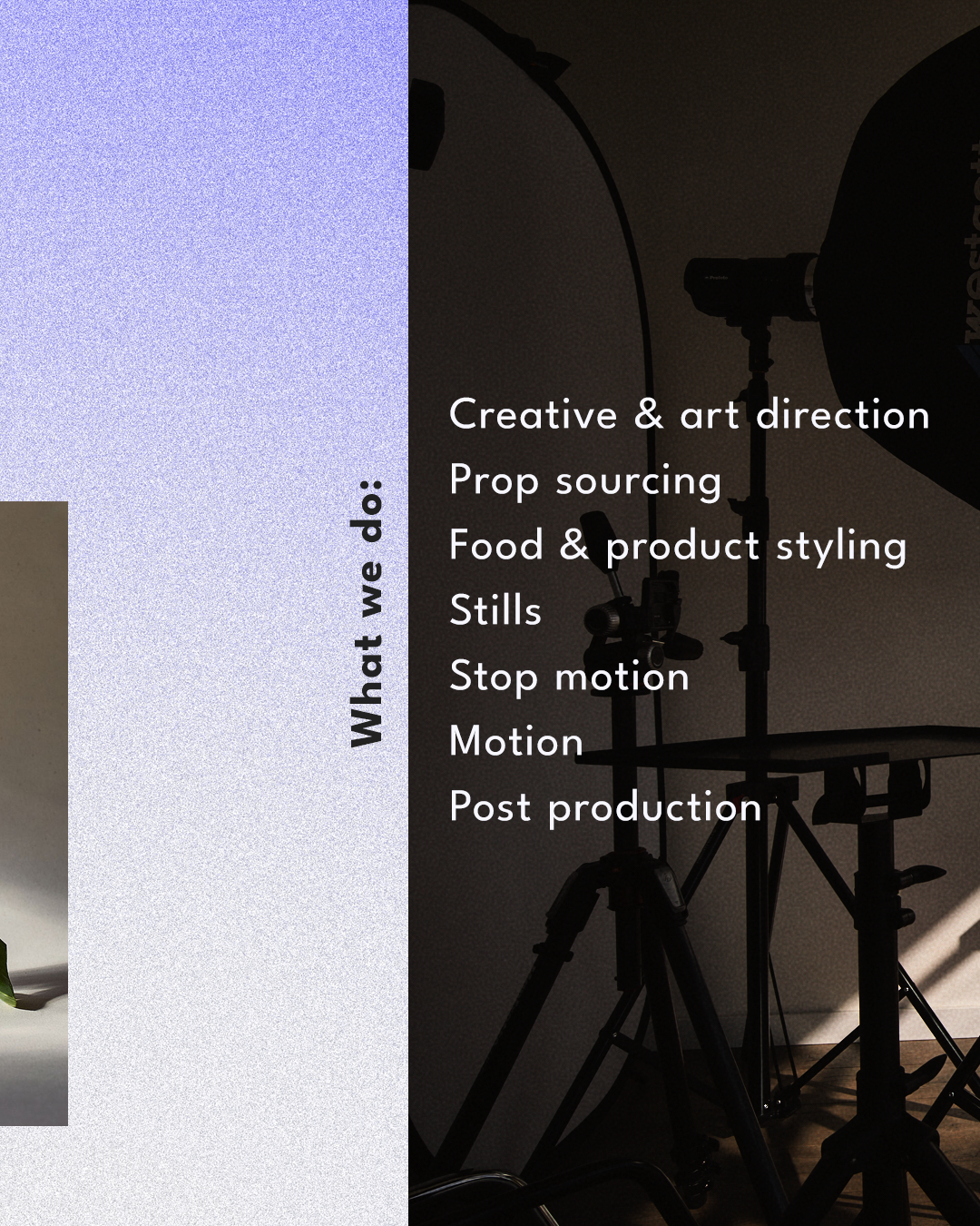Shoots are carried out on location, in our home studio, or remotely.